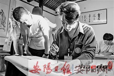 在市第五中学,中外汉学家、书法家和北京外国语大学老师及留学生代表一行30余人受到热烈欢迎。市第五中学相关负责人向嘉宾详细介绍了其独创的传统文化教育实践情况,并向嘉宾赠送校本教材《传统文化教育读本》。2000余名学生集体表演了少年武术操、合唱《五中修身歌》和朗诵《少年中国说》等精彩节目,赢得了嘉宾的阵阵掌声。在该校昼锦书院,学生社团现场进行的茶艺、古琴表演和书法展示吸引了众多目光,大家纷纷赞叹:“安阳中学生的书法功底非常棒。”在不同班级,俄罗斯汉学家裴慈基、北京外国语大学教授张朝意、美国北卡州孔子学院前院长阎伟红、北京第二外国语学院教授常耀华、北京外国语大学中文学院老师孟德宏等围绕“汉字文化历史演变”“汉字对外交流”进行现场授课,并鼓励同学们认真学习,努力探索汉字里的中华文化。