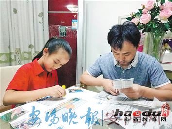 学生和家长一起制作剪报