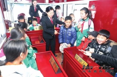 图为孩子们在巡回审判车上实地体验