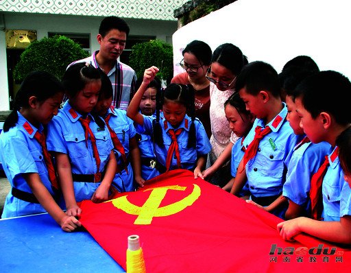 随同党旗寄来的信中写道:“十九大在今年召开的消息传来,老师和同学们都高兴极了,我们从今年‘六一’开始利用课余时间绣这面党旗,祝党的十九大胜利召开、圆满成功。”稚嫩的字迹里,承载着孩子们最诚挚的祝福。