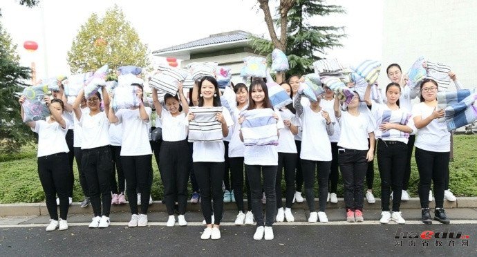 洛阳师范学院的女生们亲手为校车公交车缝制坐垫
