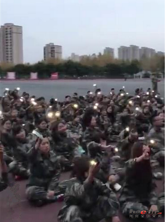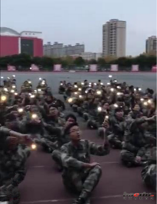 演唱过程中,同学们大声高唱,同时打开手机灯光,现场成为一片片星光的海洋,就像是一场明星演唱会。