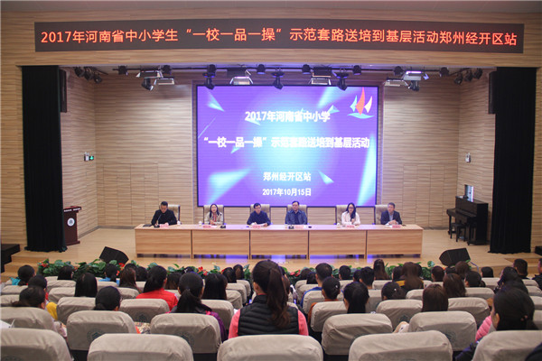2017年河南省中小学“一校一品一操”大课间示范套路送培到基层活动是河南省教育厅为丰富全省学校大课间活动内容,提升中小学体育教师专业素养,促进“一校一品一操”体育特色发展而举办的一系列专题培训活动。