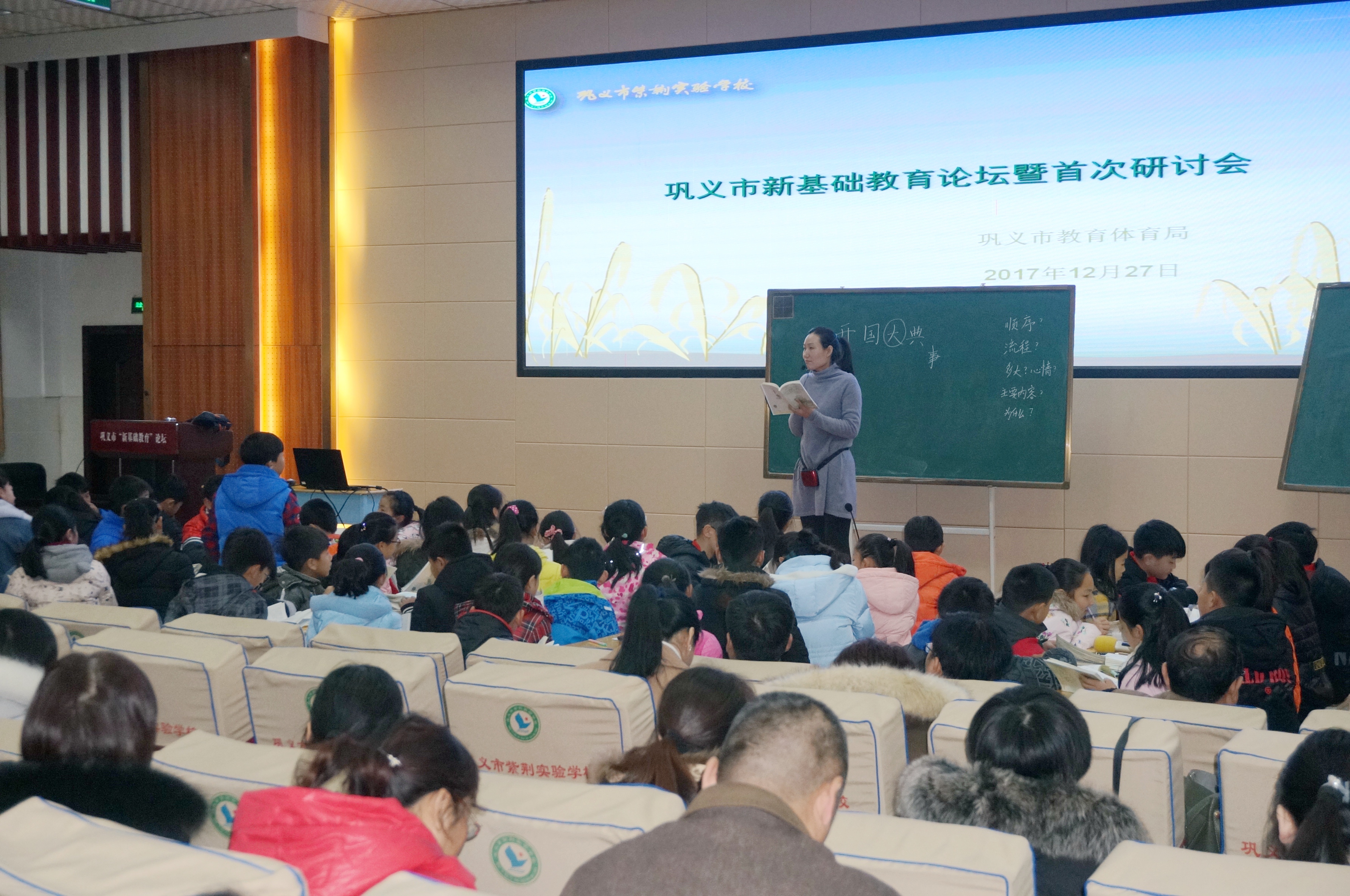 在巩义市的“新基础教育”实践中,像张老师这样一心投入“新基础教育”实践探索研究的老师还有很多,为了梳理总结“新基础教育”实践研究项目一学期来的研究成果,更好地推进下学期的研究工作,12月27日,巩义市“新基础教育”论坛暨首次研讨会在紫荆实验学校举行,来自全市的“新基础教育”3所实验校、3所跟进校、16所合作校的骨干教师代表、教学副校长、校长及部分农村中小学校长近300百人参加了论坛研讨活动。论坛由教体局副局长贺新向主持,分两个阶段进行。