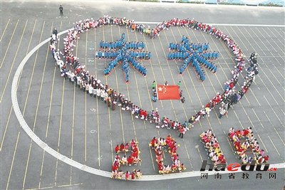 操场上,金水区未来路小学的师生和家长们手拿气球和花束摆出“未来”“2018”等造型,通过无人机拍下这珍贵的时刻。