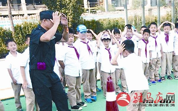 市公安局特警支队教练员李军波向同学们讲解了校园内外存在的常见安全隐患与预防措施,对交通、饮食、防火、防触电等安全知识进行深入浅出的讲解,并通过现场提问、道具演示、情景展示等方式增强同学们参与的积极性。随后,在老师的带领下,同学们来到操场,向教练员学习遇到险情后双手抱头、大声呼救等自救方式。