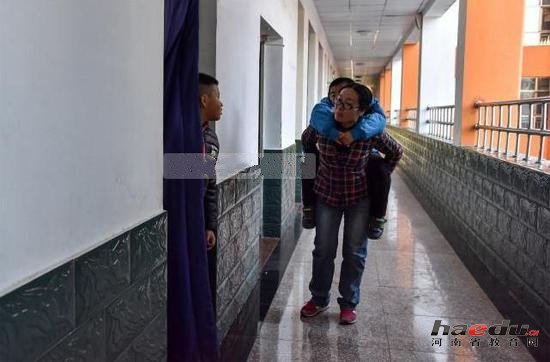 一句承诺,把一个7岁30多斤的孩子,背到了10岁70多斤。王一超9岁前,在校期间,张老师都是把他背到厕所,看着他上完厕所,再背回教室。今年年初,细心的张老师发现,自己看着孩子上厕所他会不好意思。后来,张老师就想了一个办法,让班里的男同学到男厕所先去打探,没人了她把王一超背进去绑好,由男同学照看,上完厕所,听到男同学招呼后,张老师再把他背回教室。