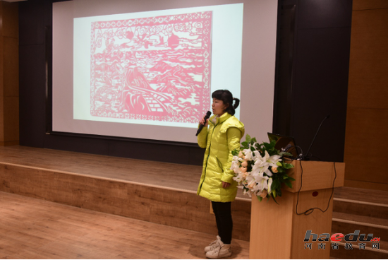 “剪纸:红星绘河山”的作者们来自土木72班,班级代表肖娜分享了他们班的创作历程,刚进入大一的他们合作完成了一幅包含长城、雄鹰、万里河山等红色意象在内的剪纸作品。这幅作品凝聚了同学们的心血,也蕴含着他们团结协作的精神。