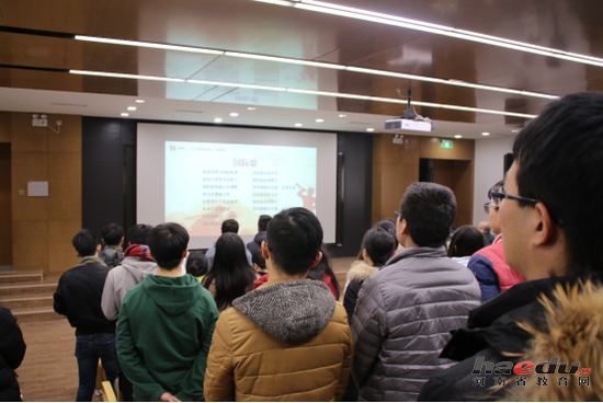 在开幕式接近尾声时,全体起立合唱国际歌。