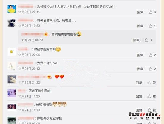 此事一经传出,网友纷纷评论:“厉害了!”更有网友替演讲人员捏了一把冷汗,“没有话筒,怎么办?”还有网友评论:“为长师打call,为演讲人员打call,为台下的同学们打call!”