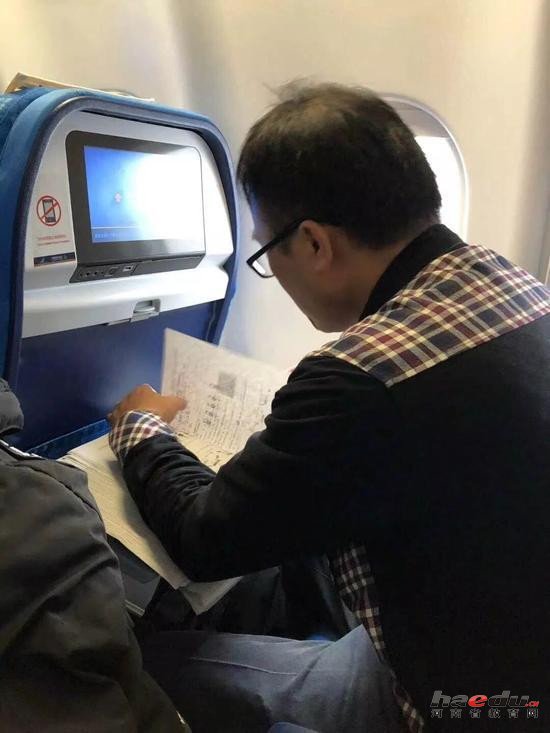 “照片是真的,是和我一同出差的同事所拍。”潘锦文称,赶飞机一路评改的是班上学生的周测试卷。“期末了,赶着出成绩,学生复习需要,最近要出差,一天排了八节课,实在抽不出时间。”