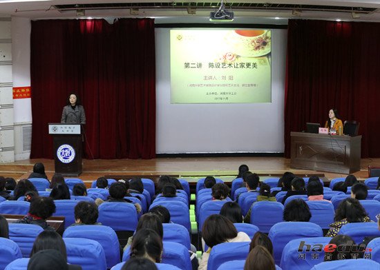 如何对家居空间进行装扮和点缀,打造出既温馨舒适、又充满意境的心灵港湾?11月24日下午,紧扣“家居设计”主题,校工会在明伦校区逸夫科技馆二楼报告厅举行知性魅力大讲堂第二讲,邀请艺术学院教师刘阳作了题为“陈设艺术让家更美”的讲座。讲座由校工会副主席、女工委员会主任宋菊芳主持。