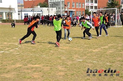 学校聘请专业足球教练,将足球教学纳入课堂教学,提高学生参与足球活动的兴趣。在阳光运动大课间组织学生练习足球操,将颠球、踩球、控球、传接球、运球射门等基本动作包蕴在节奏鲜明、简洁易学的足球操中,真正做到寓教于乐。