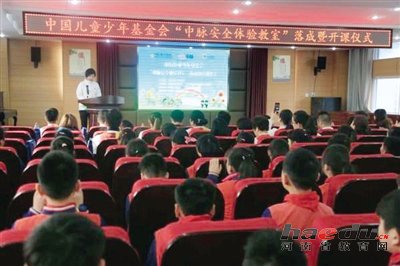 仪式由郑东新区康平小学德育主任刘田甜主持。中国儿童少年基金会儿童安全教育工程办公室副主任黄焕铿等共同为安全体验教室揭牌。
