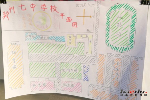 学生绘制的学校面图展示