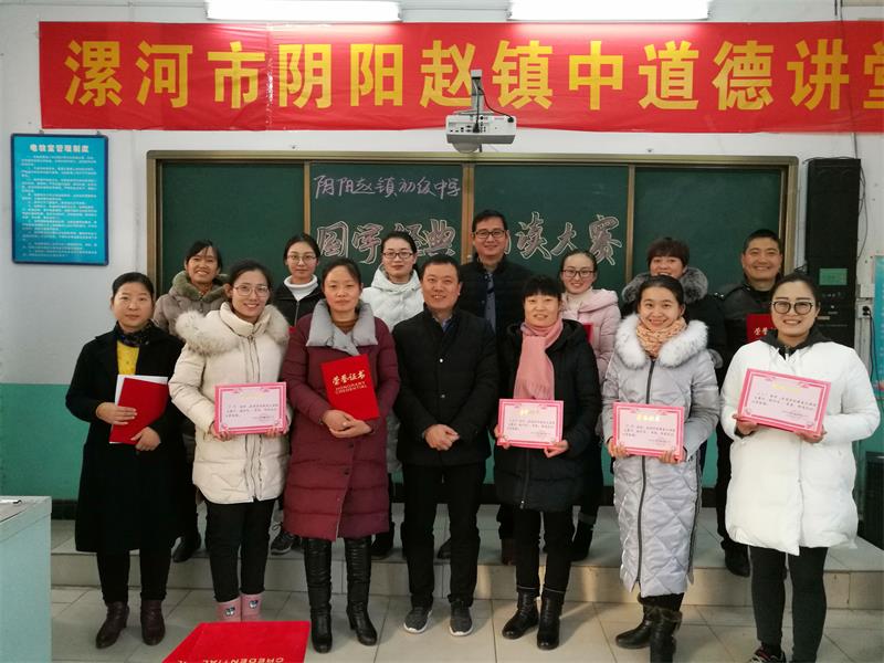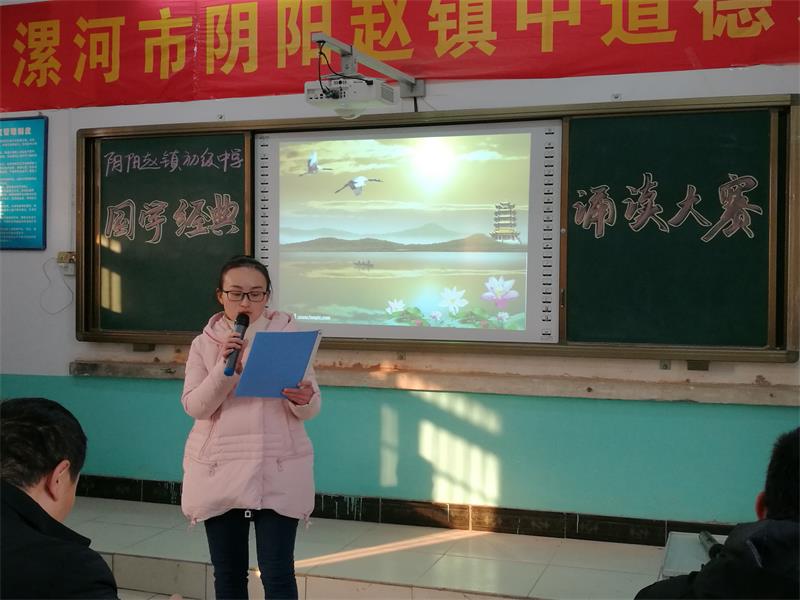 2017年12月27日上午,西城区阴阳赵镇中于举行了“诵读国学经典 传承华夏文明”国学经典诵读比赛。通过弘扬祖国优秀传统文化的方式喜迎2018年元旦。