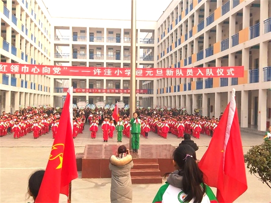 郾城区许洼小学举行“红领巾心向党”迎元旦少先队入队仪式