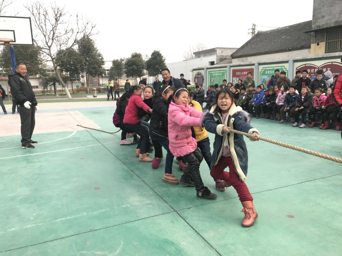 新店镇第二中心小学举行迎元旦师生拔河比赛活动