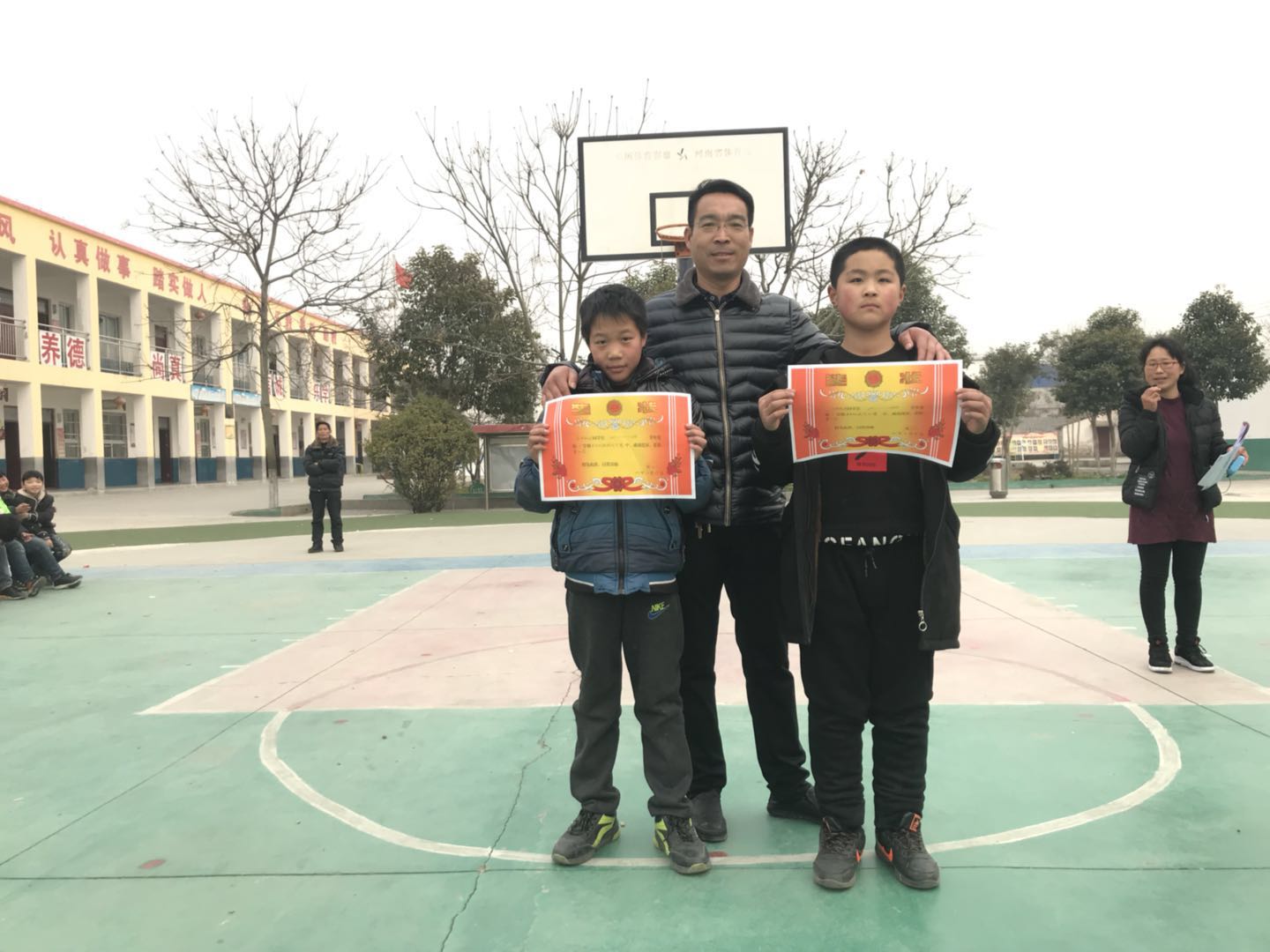 李校长为获胜班级颁发奖状