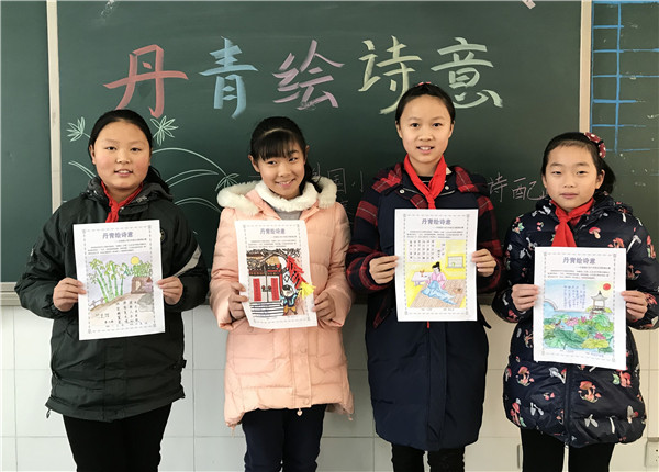 三、四年级的汉字听写大赛,让孩子们不仅要会写汉字,还要写得漂亮,在书写中感受汉字之美。五年级的“成语消消乐”则通过游戏的方式,让孩子们在打乱的文字中找到四字成语,规范书写。拿到试卷的孩子们说道:“好好玩,像是闯关游戏!”六年级的“丹青绘诗意”,形式更是新颖别致。比赛时,孩子们不仅要挑选自己喜欢的诗歌默写出来,还要为诗歌配图,感受“诗中有画”、“画中有诗”的意境。孩子们一边默写古诗,一边拿起彩笔将自己对古诗的意境描写描绘到纸上。有的画出骏马奔腾,有的画出慈母缝补,有的画出腊梅绽放,一幅幅优美的图画在纸上绽放,再配上一首首古诗,孩子们都变身书画达人。