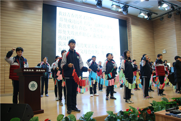 最后,实验中学校长崔随庆用美国28届总统威尔逊实现梦想的故事激励同学们:“人可以清贫,但不能没有梦想,每个人都应有属于自己的梦想,而有了梦想就需付出实际行动,有了行动更需不断地坚持。在梦想的召唤下,每个人都努力着,执着追求,才能实现生命的价值与意义。”