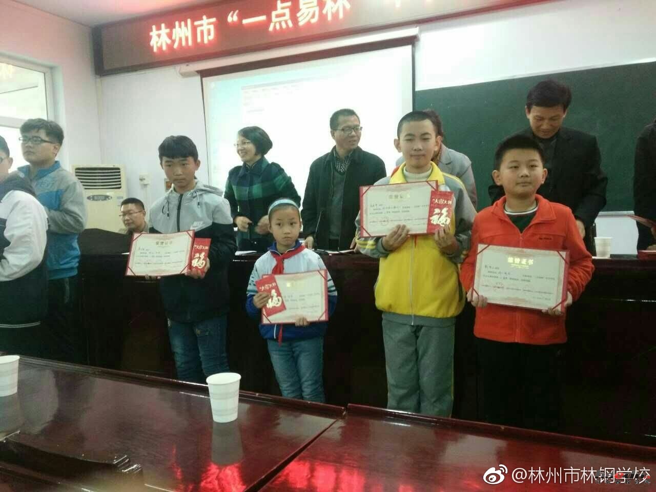 11月12日,林州市“一点易杯”中小学生征文大赛颁奖仪式在林州市一实小举行,安阳林州市临钢学校有10名学生获奖,其中二等奖、三等奖各两名,优秀奖6名。他们分别获得奖金、一套学习工具书。这些成绩的取得,离不开孩子们用心读书和练笔以及辅导老师的努力。祝贺你们,为你们喝彩!祝你们再接再厉,更上一层楼!