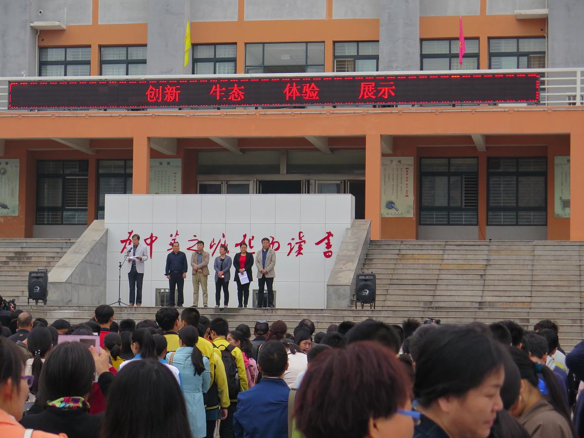 10月14日上午,主题为“创新生态体验展示”济源市首届“大象杯”学校科技节在我校成功举办,市科协主席刘夏彬、教育局副局长李伯勇、河南省大象出版社发行部郭卫国、市教育局教研室主任李雪莹、市教科所所长杨保健、沁园中学校长卫强等领导参加此次活动开幕式。