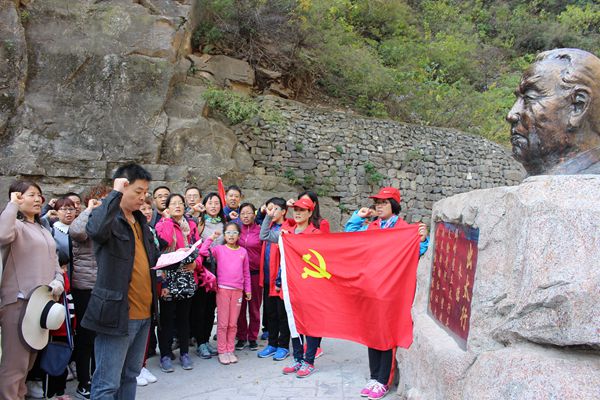大家在"朱德出太行"纪念碑前举行授旗仪式并重温入党誓词,怀着敬仰之情向老一辈革命家三鞠躬,寄托对他的哀思。同时大家循着朱德出太行小道,亲身体验革命抗战路。曲折的小道、庄严的誓词、磅礴的诗篇,深深感染了每一位党员教师,让大家重温了那段波澜壮阔、激情燃烧的红色岁月,追思和学习了革命先贤崇高的品格风范,让大家经受了一次灵魂的洗礼。大家纷纷表示,要传承红色精神,并不断把这种精神发扬光大,培养出更多的社会有用人才,为中华民族伟大复兴的中国梦再立新功。