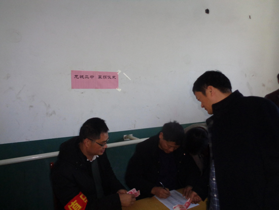 马军辉老师的遭遇,很快引起龙城镇中心校的高度重视,在深入了解实际情况之后,镇中心校迅速下发为马俊辉老师捐款的倡议。早就商量着怎么为自己的同事解燃眉之急,献出自己一点爱心的龙城二中老师,在11月22日一大早,就排起长队进行捐款。校长王红生第一个拿出200元奉献爱心,随后所有的老师你一百他五十,纷纷献出自己的爱心,不到半天,龙城二中的所有教师的爱心就捐款达到6200元。窗外寒风呼啸,屋内暖意融融,或许这笔捐款对马军辉老师的后续治疗费用是杯水车薪,但龙城二中的教师相信自己的颗颗爱心和汩汩暖流一定鼓起他活下去的勇气,会竖起他坚持治疗的信心。