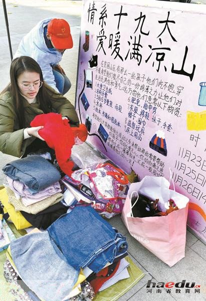 最近几天,洛阳师范学院国土与旅游学院学生们忙着举行“助力2013级毕业生支教大凉山”的活动。该院酒店服务与营销专业毕业生袁宁宁为了让574名彝族学生温暖过冬,发出了一封征集过冬物资的公开信,得到母校师生支持。