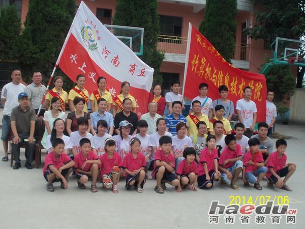 活动结束后,商丘师院的师生和商丘市水上义务救援队的队员和小李庄学校的部分师生代表合影留念。通过这次活动,必能使小李庄学校的师生进一步掌握水上安全知识,为防溺水打下坚实的基础。