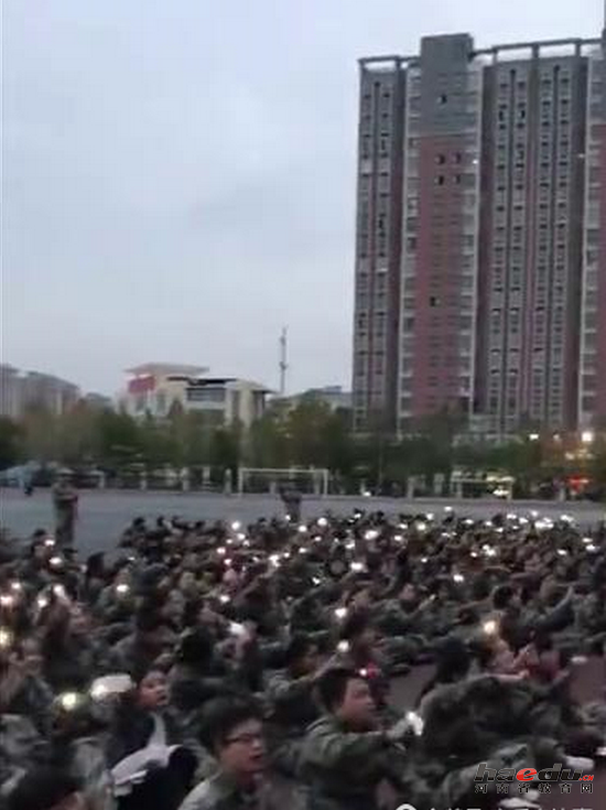 演唱过程中,同学们大声高唱,同时打开手机灯光,现场成为一片片星光的海洋,就像是一场明星演唱会。