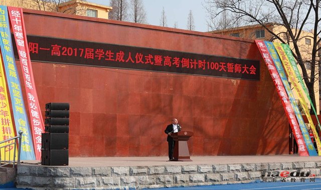 2017年2月27日下午,市一高举行"信阳一高2017届学生成人礼仪式暨高考倒计时100天誓师大会"。