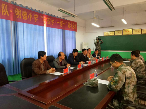 10月22日,驻许某部队政委甄忠信和训练处长冯祖华、保障处长周永刚、政治处副主任刘剑创等一行8人到许昌县蒋李集镇第一明德小学开展“一帮一、手拉手”捐资助学活动。许昌县人民武装部陈刚要部长、蒋李集镇党委书记孙晓辉、副镇长杨准、镇武装部长张晓磊等出席捐助仪式。