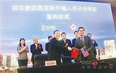 郑东新区西亚斯外籍人员子女学校签约仪式举行,标志着由郑东新区管委会主导的河南首家外籍子女学校正式进入筹备运营阶段。
