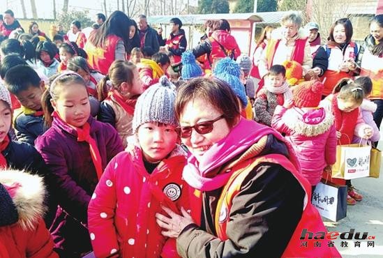 见到来自郑州的客人,这里的198名学生还有点怯生。志愿者们拿着“温暖包”走进孩子们中间,逐一发送。为了看看袋子里的围巾帽子是否合适,他们还给孩子们戴上试试。当得知这些漂亮暖和的编织品是郑州爱心人士一针一线亲手完成的,孩子们特别感动。一年级的仝梦莹小朋友说:“我从来没戴过这么好看的围巾,它真的是我的吗?”当得到志愿者的肯定后,她笑得格外甜美。