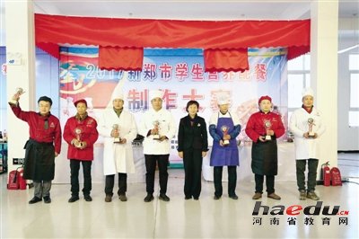 郑州市中小学保健站书记乔敏、郑州市营养学会会长薛玉珠、营养专家李璞、谢金霞等老师担任本次大赛评委。通过三轮角逐和评委的综合评分,最终来自郭店镇中学的冯小彦厨师获得本次比赛的一等奖,梨河中学厨师王立勇、新郑一中厨师赵中华、龙湖一中厨师杨坤杰分获二、三等奖。