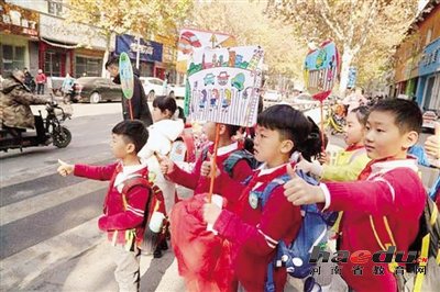 “礼让斑马线”从娃娃抓起 手绘指示牌提醒您开车礼让