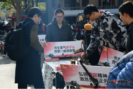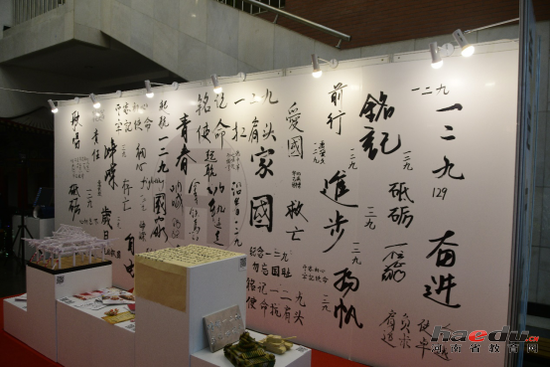 “一二九书法墙”由土木建管系发起,通过微信推送链接、路演等形式收集了同学们的即兴书法作品近一百份,形成一幅广大同学对一二九印象的群像,他们的作品也会在清华大学主楼进行展示。