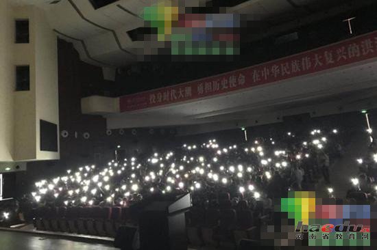 高校演讲现场突然停电 学生用闪光灯照亮舞台