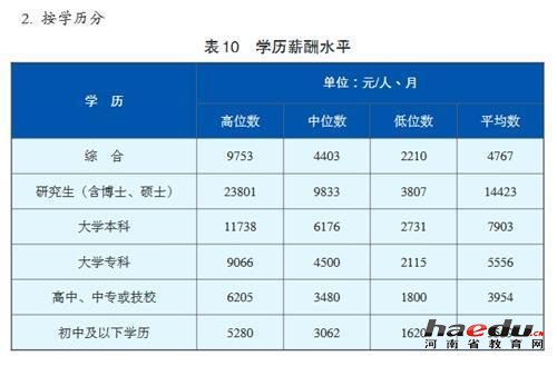 成都人才蓝皮书中关于学历薪酬水平的表格,图表来源于《成都人才蓝皮书》