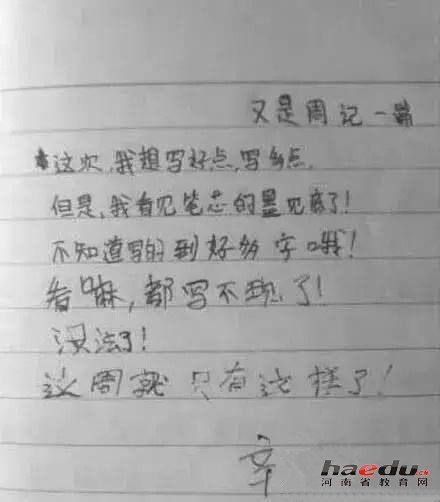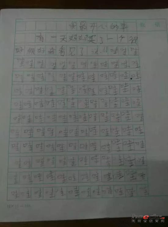 小学生作文写了两页"哇"凑字数 被老师罚读全文