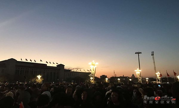 为了看自己喜欢明星的演唱会,武汉大学哲学学院研一学生任为和同学去北京跨年。得知今天是中国人民解放军仪仗队第一次执行天安门升国旗仪式,任为和其他3名同学一早起床,于6时30分左右赶到天安门广场。