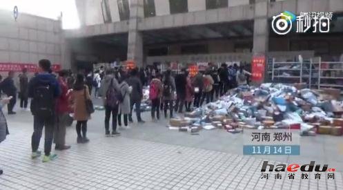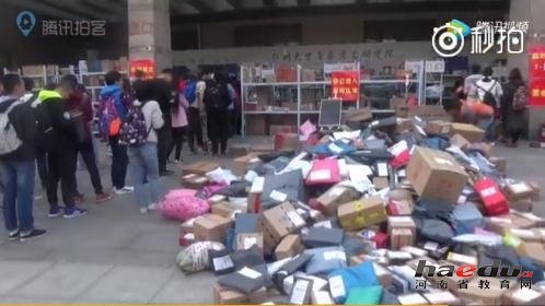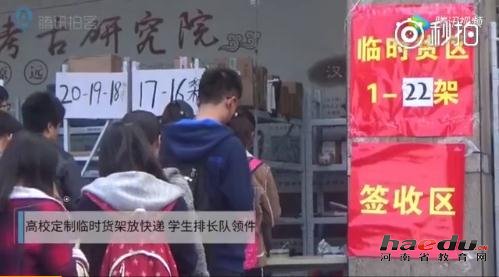 双十一之后:郑州大学数百大学生拐弯儿排长队领快递
