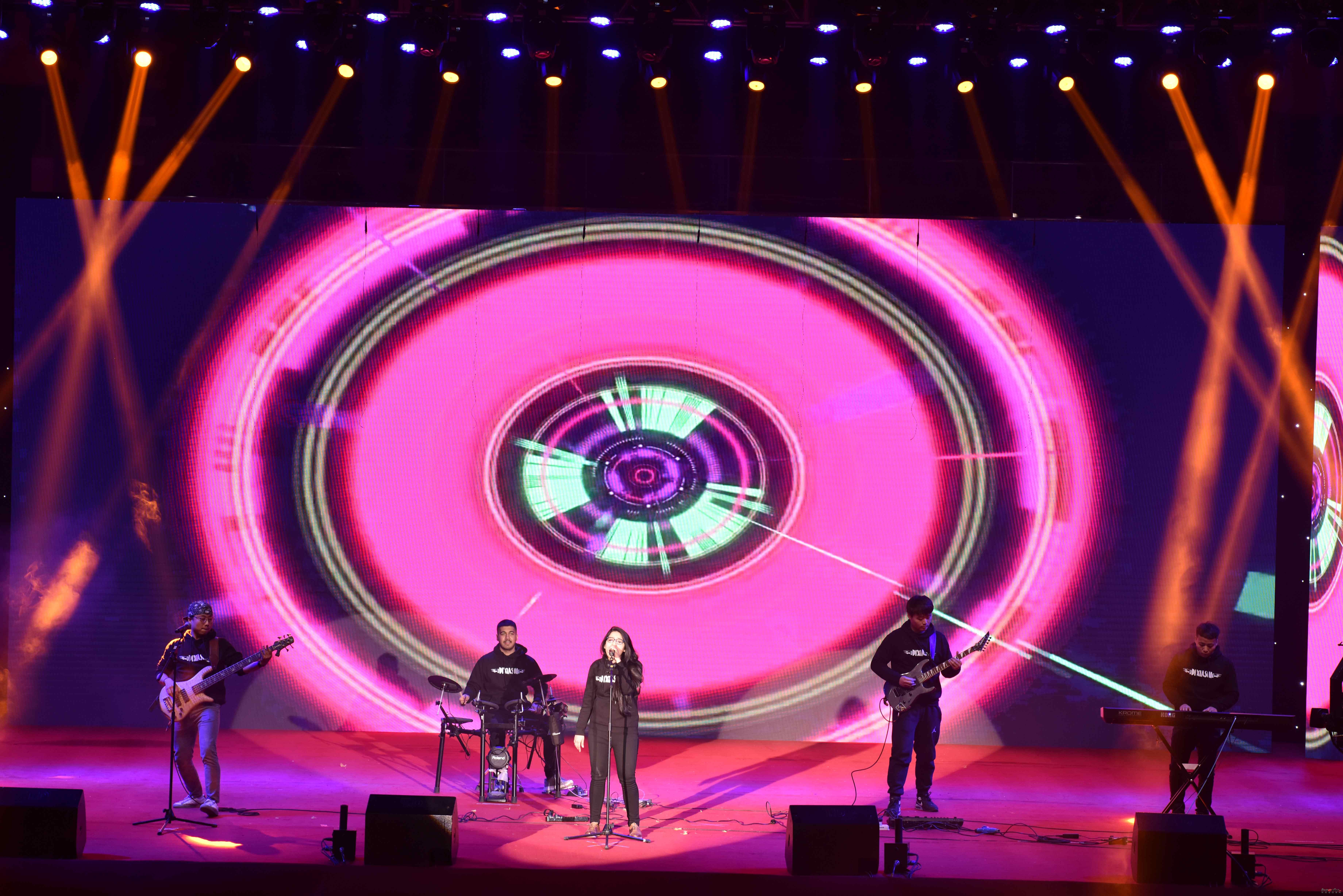 歌舞飞扬齐欢聚,情满校园共良辰。中心体育馆内舞台灯光璀璨,节目精彩纷呈,现场笑语浓浓。元旦文艺晚会分为“喜逢新时代” “筑梦新起点”“阔步新征程”三个篇章,象征着郑州大学将在新时代,以进入一流大学建设序列为新起点,昂首阔步迈上新征程。《月满春江》以典雅唯美的中国风舞蹈动人心弦,讲述异乡人的古韵乡愁;郑大版《追光者》由校园歌手倾情演唱,唱出了校园奋斗者们自信、勇敢、拼搏的心声;《唐三彩》中舞者衣裙轻拂,舞姿袅袅,一颦一蹙再现繁唐盛世;《郑大有相声》在说学逗唱中融入了豫剧、快板、古诗等元素,巧言妙语引得全场捧腹大笑;《凤尾竹下》用曼妙的舞姿、欢快的舞步,配以空灵的音乐,带来回归自然的美好;地下室乐队的《First Punch&Jenny》用重金属摇滚燃爆全场,诠释了外国留学生的青春与梦想;《中国,上场》则以饱满深情的朗诵,一字一句都歌颂着祖国的繁荣富强;教工合唱团演唱《阿拉木罕》和《我和我的祖国》,表达了郑大人对家国的挚爱和依恋。最后,一曲温情的《难忘今宵》为晚会画上了圆满的句号。