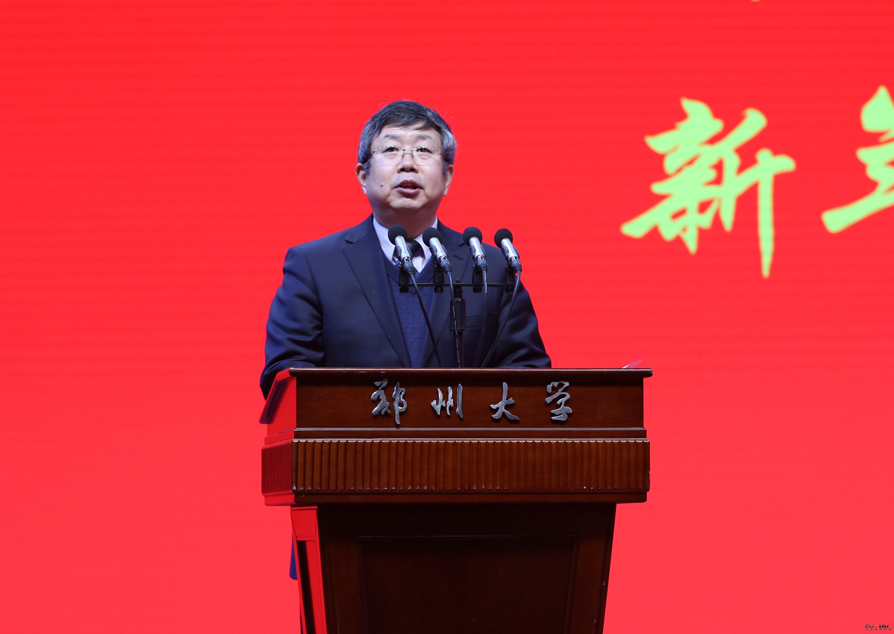 辞旧迎新更万象,共谱一流锦绣篇。元旦文艺晚会伊始,中国工程院院士、校长刘炯天发表了郑州大学2018年新年贺词。他代表学校党委行政向全体师生员工、离退休老同志、海内外校友致以诚挚的节日问候和新年祝福!他说,2017年是郑州大学发展史上不平凡的一年。学校进入一流大学建设序列,实现河南高等教育发展的历史性突破。学校出台《郑州大学一流大学建设方案》,确立综合性研究型办学定位与世界一流大学建设目标;提出学校“三步走”发展战略,到2020年,努力把郑州大学建成国家一流大学。刘炯天回顾了过去一年学校在党建、人才培养、师资队伍建设、学术产出、校园文化建设、对外合作交流等方面取得的突出成绩。他指出,学校正面向新时代,踏上新征程,要以昂扬斗志,开拓创新,扎实推进一流建设,为决胜全面小康与国家现代化建设贡献郑大力量。
