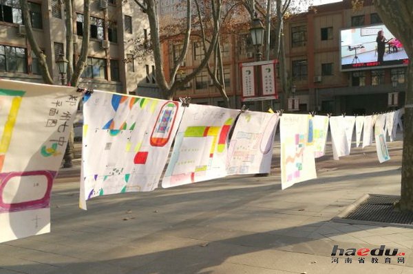 同时,另一边“我的校园我来画”校园平面图绘制活动也在火热的进行着。学生积极参与,并在老师的带领下,出色地完成了绘制校园平面图的相关学习。孩子们将完成的作品,粘贴悬挂在校园的一角。为这个寒冷的冬季,增添了一抹别样的色彩。
