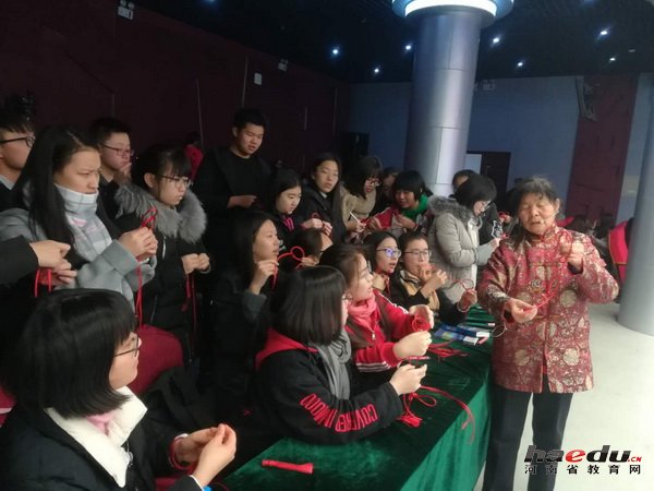 这次民间艺术进校园,不仅让同学们学到了中国结编织基本方法,还让同学们感受到了中国结不仅是作为一种装饰的形态存在,而且承担着记述历史,传播文明的责任。此外,这次讲座还帮助同学们提高了审美素养,陶冶了情操,发展了个性,启迪了智慧,促进了同学们的全面发展;同时也让同学们感受到了中华民族深厚的文化底蕴和博大精深的民间艺术,激发了同学们传承中华优秀文化的意识和决心。