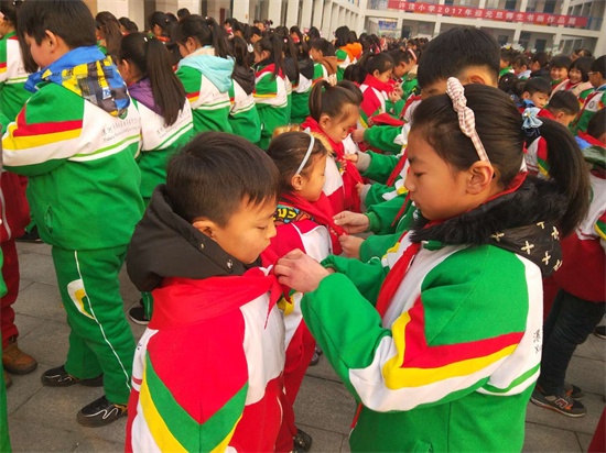 郾城区许洼小学举行“红领巾心向党”迎元旦少先队入队仪式