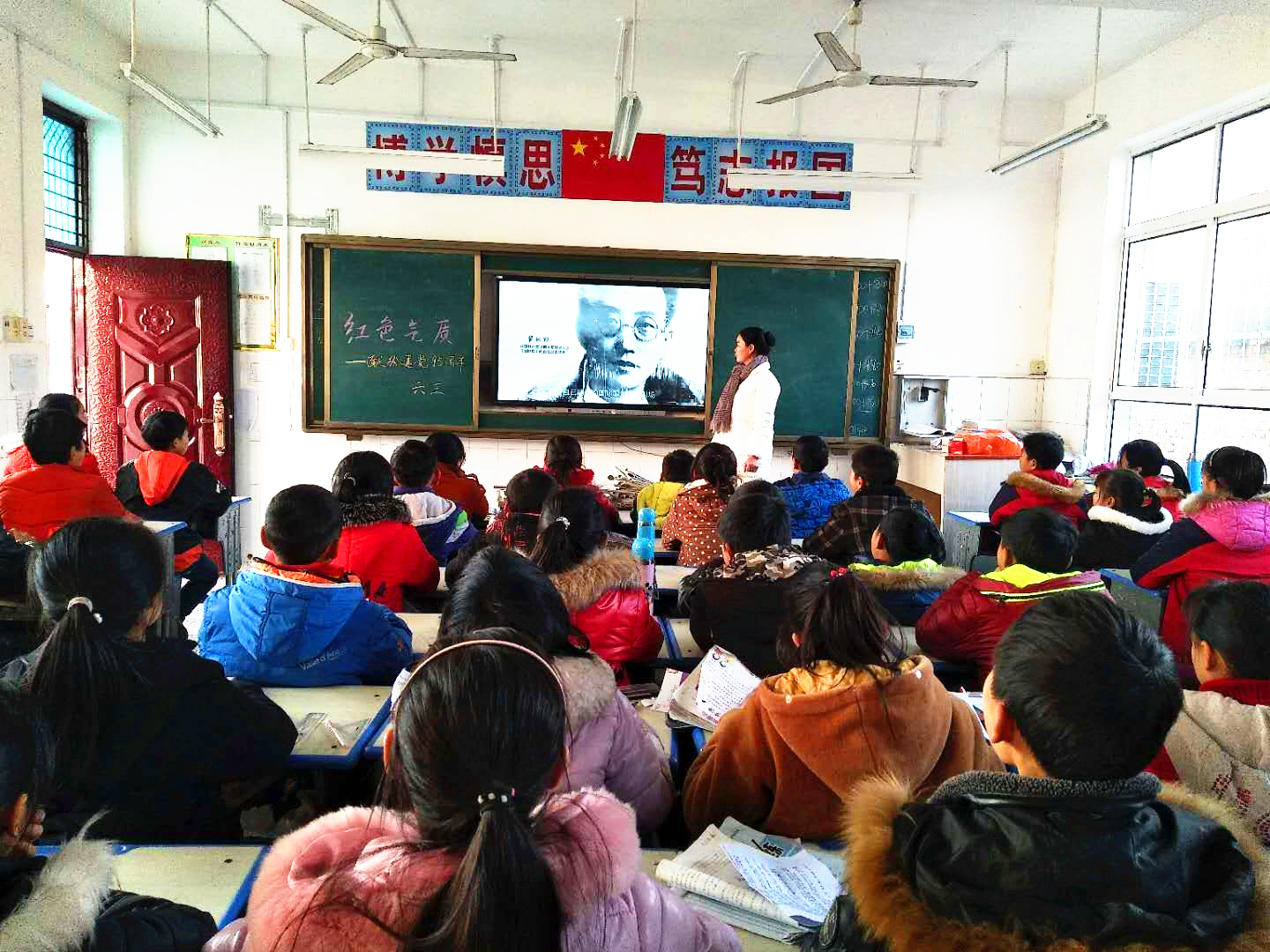 教师先讲解先烈事迹,让学生了解党史,再观看影片